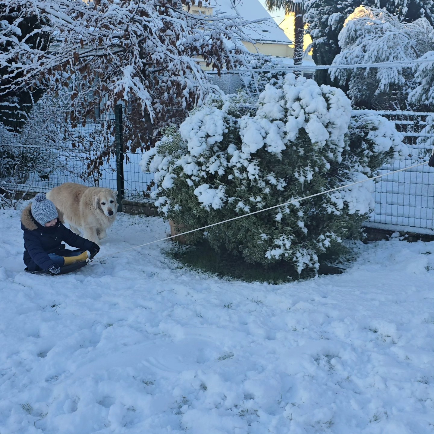 Victoria étais au ange de voir la neige. Et contrairement au regard de mon chien je vous assure qu’elle est heureuse