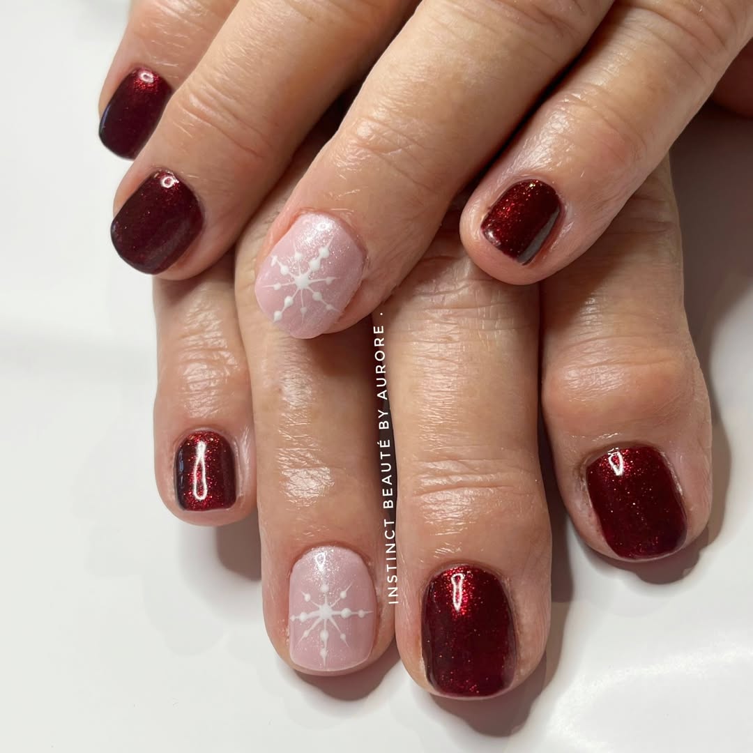Un rouge profond pailleté pour le côté festif et élégant. ❤️