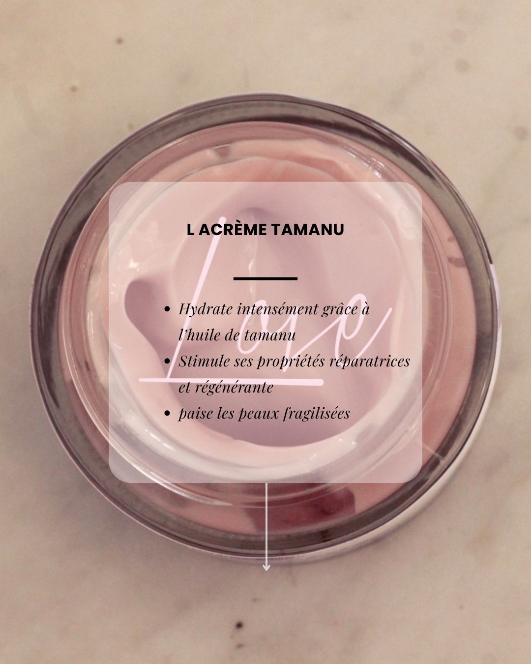 Reconnu pour ses propriétés apaisantes et réparatrices, le Tamanu aide à calmer les inconforts, hydrater intensément la peaux et restaurer son équilibre naturel.