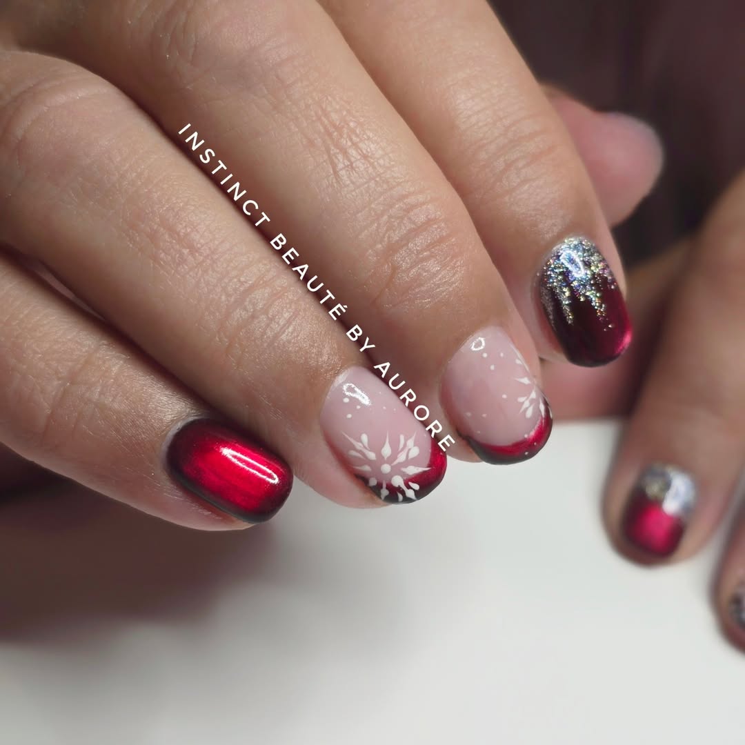 #ManucureFêtes #RougeCerise #RedNails #OnglesNoël #FrenchManucure #GlitterNails #VernisMétallique #FloconDeNeige #NailArt #InstinctBeautéByAurore #indigonails #stnazaire #instinctbeautebyaurore #indigomania #indigonailsfrance #institutdebeaute #CatEyeNails